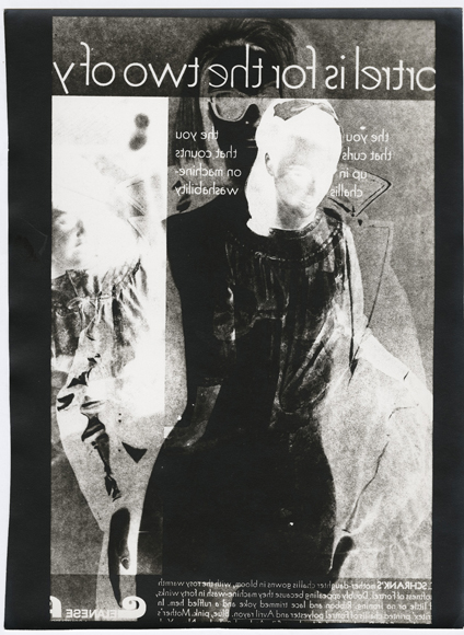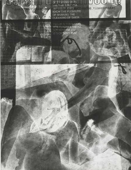 Over the course of his more than forty-year career, Robert Heinecken tirelessly investigated the representational space of printed image and text, especially as it appeared in magazine advertising and pornography. Heinecken located individual artistic expression, vision and production within the context of greater societal communication, his background in printmaking and photography facilitating an ability to engage with mass media on its own terms. Heinecken’s “revised” and “compromised” magazines, color and black and white photograms and superimposed negative pieces addressed his sources through such means as incision, inversion, flipping, mirroring and printing through. Because so much of Heinecken’s output was camera-less, his output often mimicked not only the production techniques of mass media, but also the techniques of its dispersal.