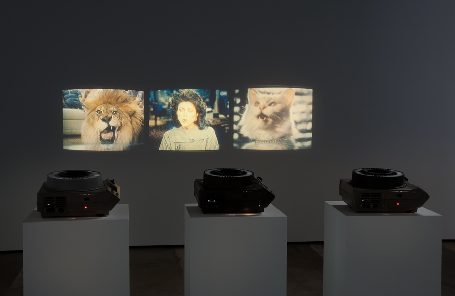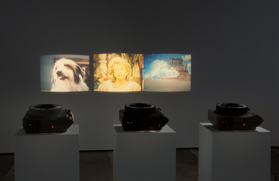 "Surrealism on TV" is shown on three variable speed slide projectors. The variable speed of each individual projector introduces a chance-driven method. It is image slot machine of sorts in which the combination of images is never the same thing twice. "Surrealism on TV" has an organic relationship to previous works like Heinecken's "TV/Time Environment” (1970), an installation that he first exhibited in "Continuum" at the Downey Museum of Art (Downey, CA) and continued to refine in exhibitions throughout the 70s. "Surrealism on TV" also relates to the magazine works and other photographic pieces Heinecken made throughout his life and weaves together Heinecken's interests in both print and broadcast media.